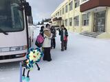 スキ板ーやストックは、PTAの方々が村営スキー場と学校の間を運搬していただいています。ご協力、ありがとうございます。子ども達はバスに乗って出発です。