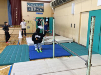 さて、小学校では、体育館に「鉄棒」のコーナーを設置しました。これから体育の授業で活用していきます。鉄棒には、ぶら下がったり回転したり、日常生活ではあまりしないような運動をするため、さまざまな運動効果があります。