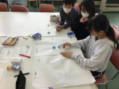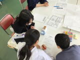 5・6年生は、防災士の方から、「避難所開設」のための紙上シミュレーションを、ゲーム形式で行いました。やり方の指導を受けながら、どこに何を、どう配置すればいいのか、どう人を動かせばいいのか、どう対応すればよいのか、避難所運営の難しさを感じているようでした。