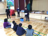 3・4年生は、体育館で、避難所ではどのようなものが必要か、どんなものを使うのかについて、役場の方に説明していただきました。