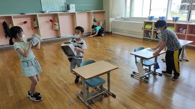 1~6年生がいっしょになって掃除をする姿は、微笑ましく感じます。