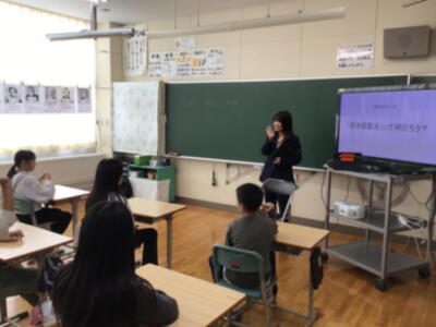 乗り入れ授業(社会科) 投稿: 担当者 (15:28) 今日の⑤校時目、5・6年学級では、拓心中学校の社会科の先生による「乗り入れ授業」を行いました。「安心して過ごせる国」を切り口に、日本国憲法に触れていきました。 安心して過ごせる国とは、どんな国だろうというのを、考え、意見を出し合いました。 はじめは緊張もありましたが、難しい課題にも根気強く取り組むことができました。