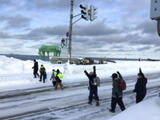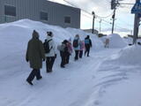 各グループと一緒に歩く先生方のかけ声や指導を受けながら、下校しました。先生方は、各通学路を歩きながら、危険箇所がないか、道路に問題点はないか、除雪の状況等についても確認しました。